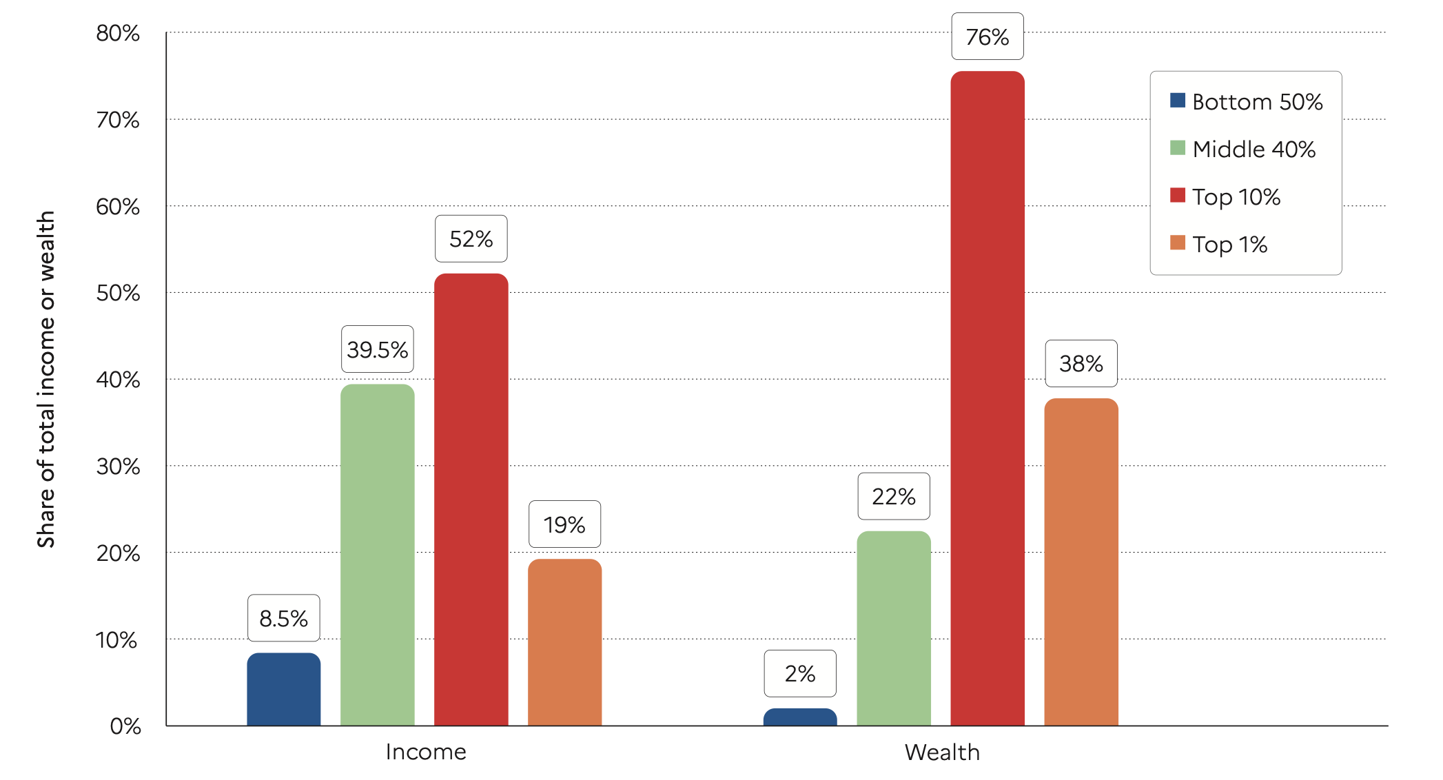 A smaller \(\alpha\) means greater inequality. Empirically, \(\alpha\) often is around 1.5 for wealth.