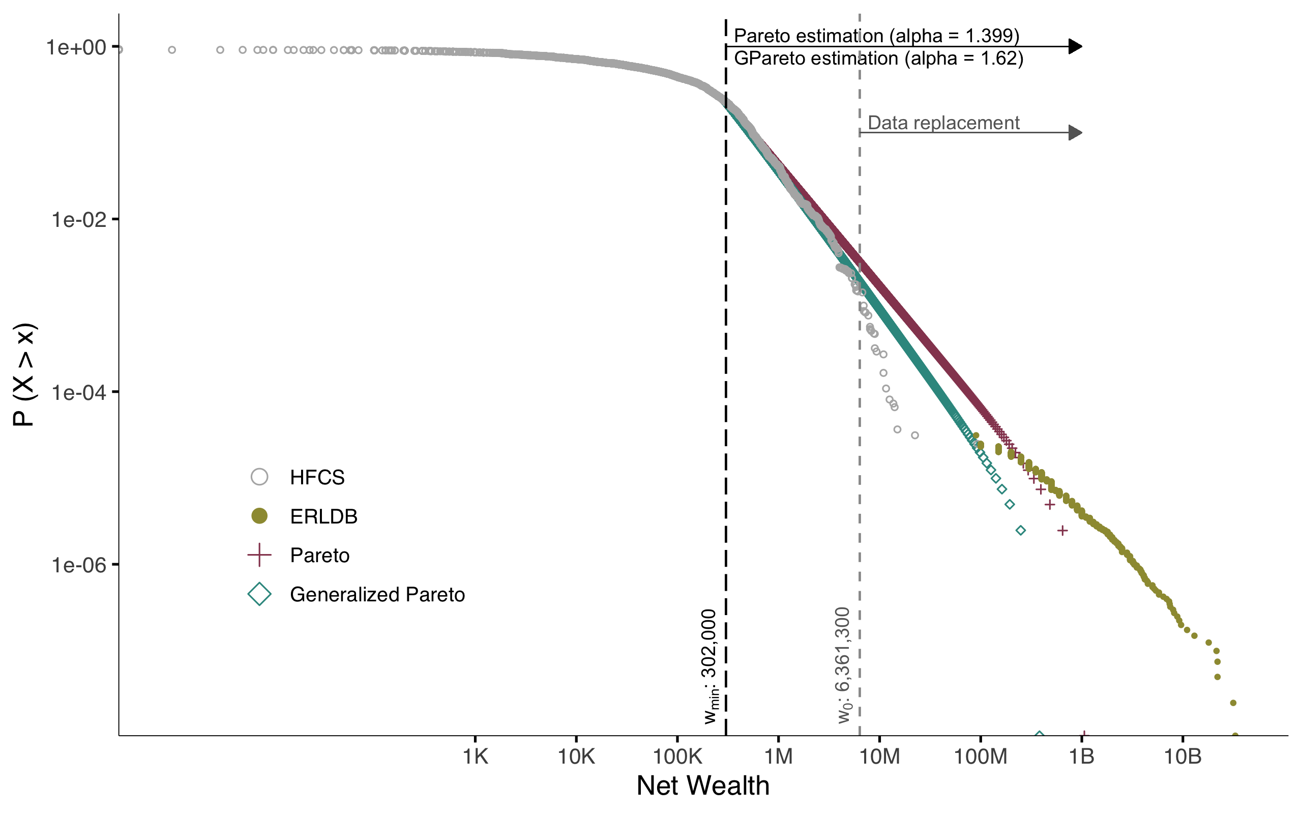 A smaller \(\alpha\) means greater inequality. Empirically, \(\alpha\) often is around 1.5 for wealth.