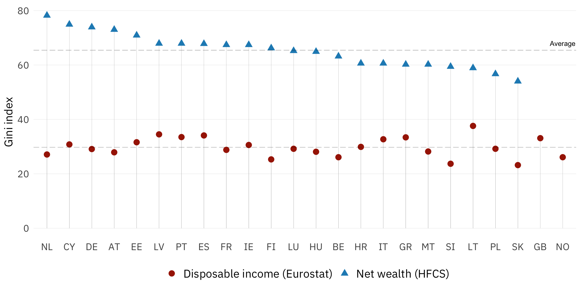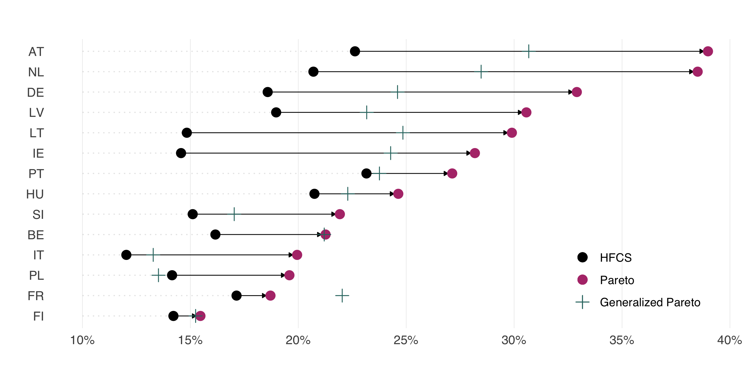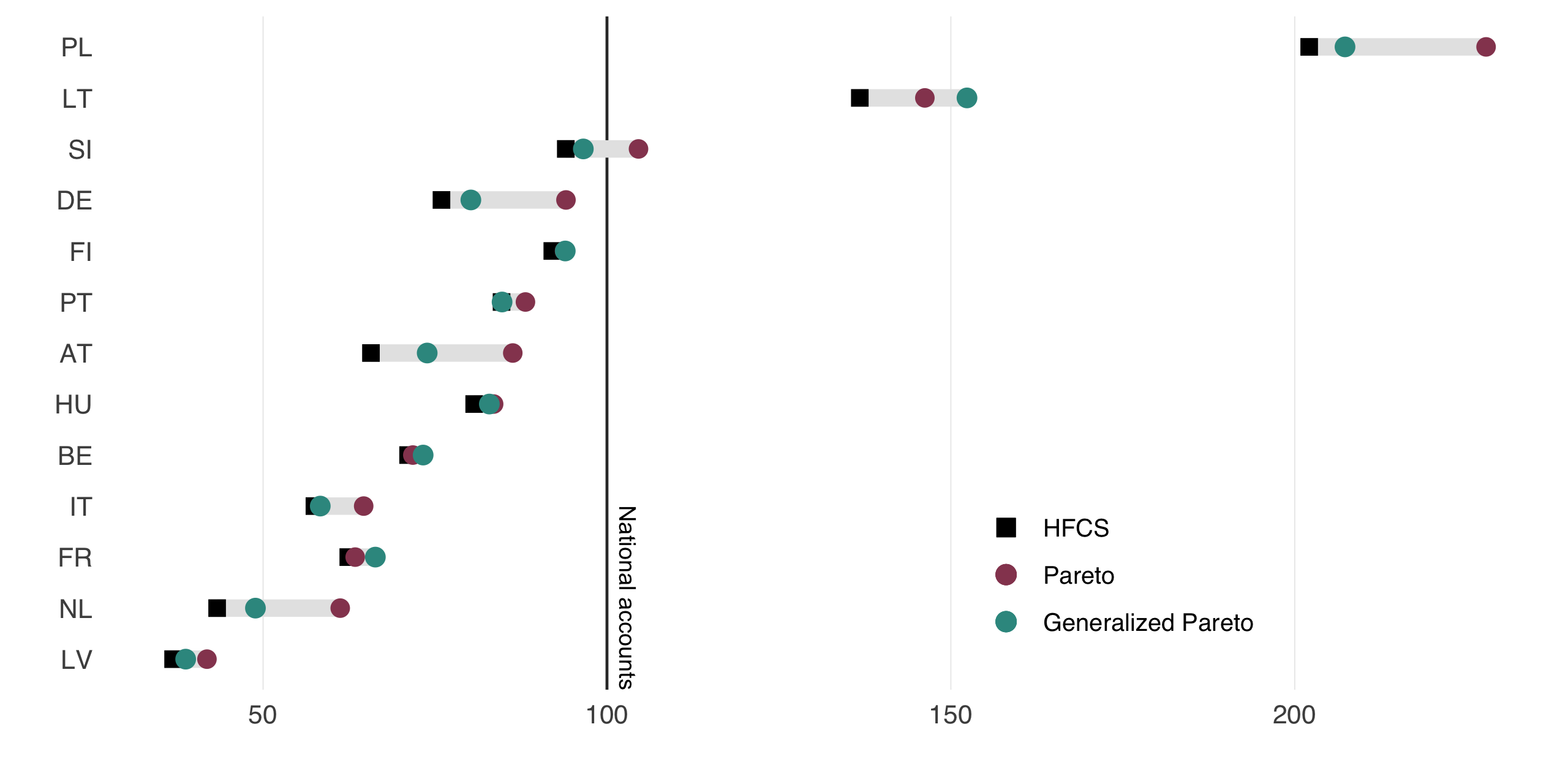 | Underreporting in HFCS in % of NA | Tangible assets | Financial wealth | Liabilities | Net wealth |