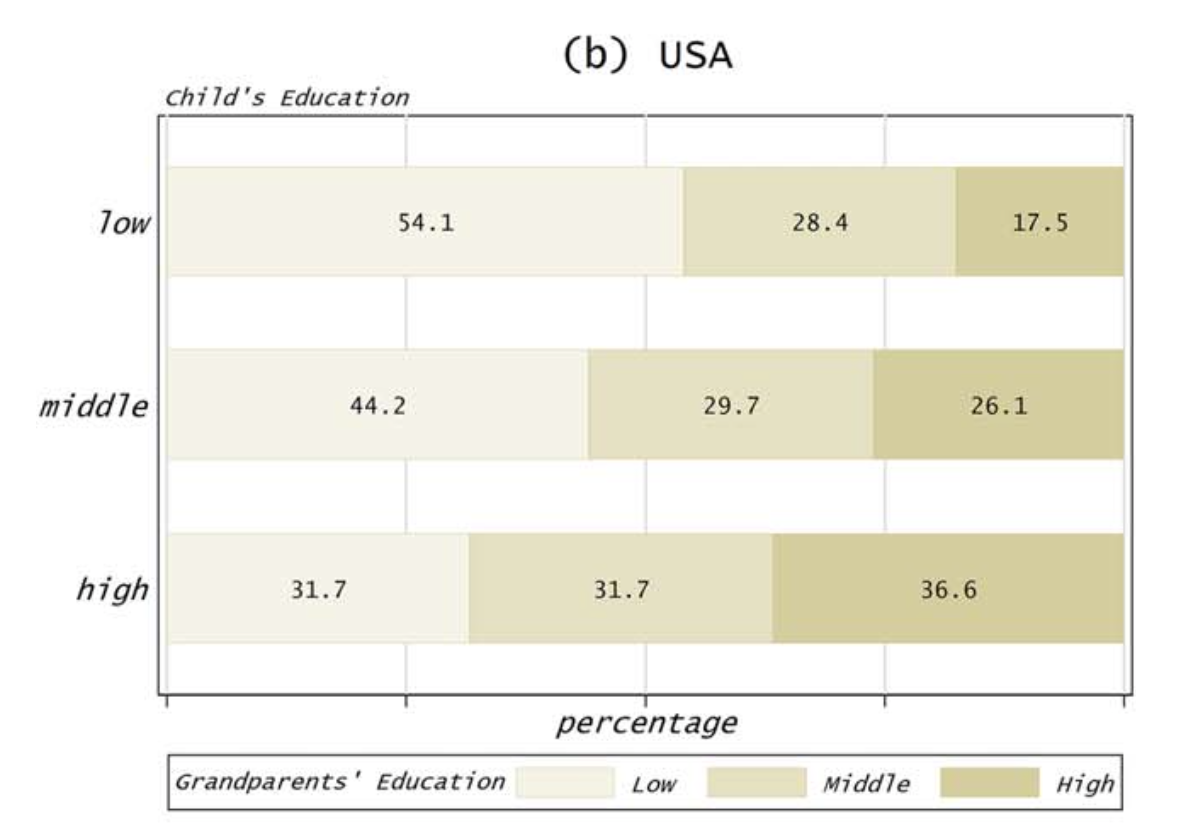 Educational attainment of children with respect to parental educational level (25-44 year-old)