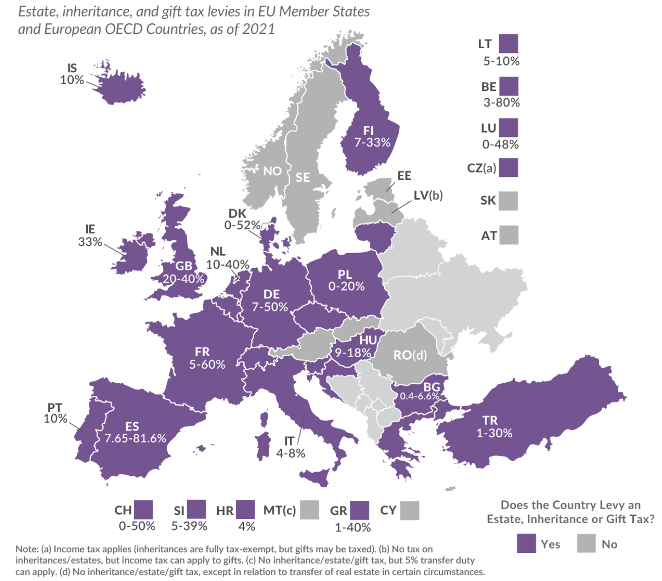 | Tax rate | Exemption (m€) | CI | Inheritance cases | Inheritances (m€) | Tax cases | Tax revenues (m€) |
