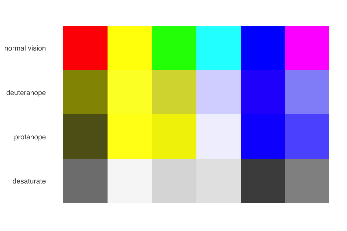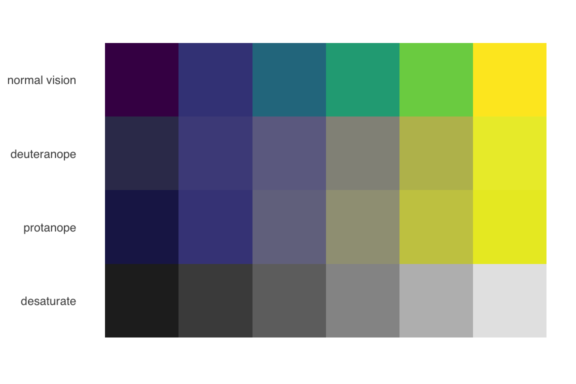 The viridis color scale is discriminable under the most common forms of colour blindness, and reproduces well in greyscale.