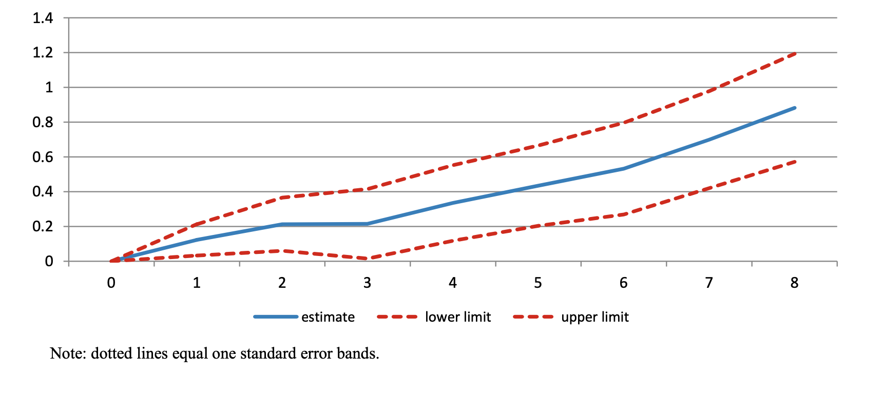Methodology: Impulse response functions (IRF) from local projections as proposed by Jordà (2005).