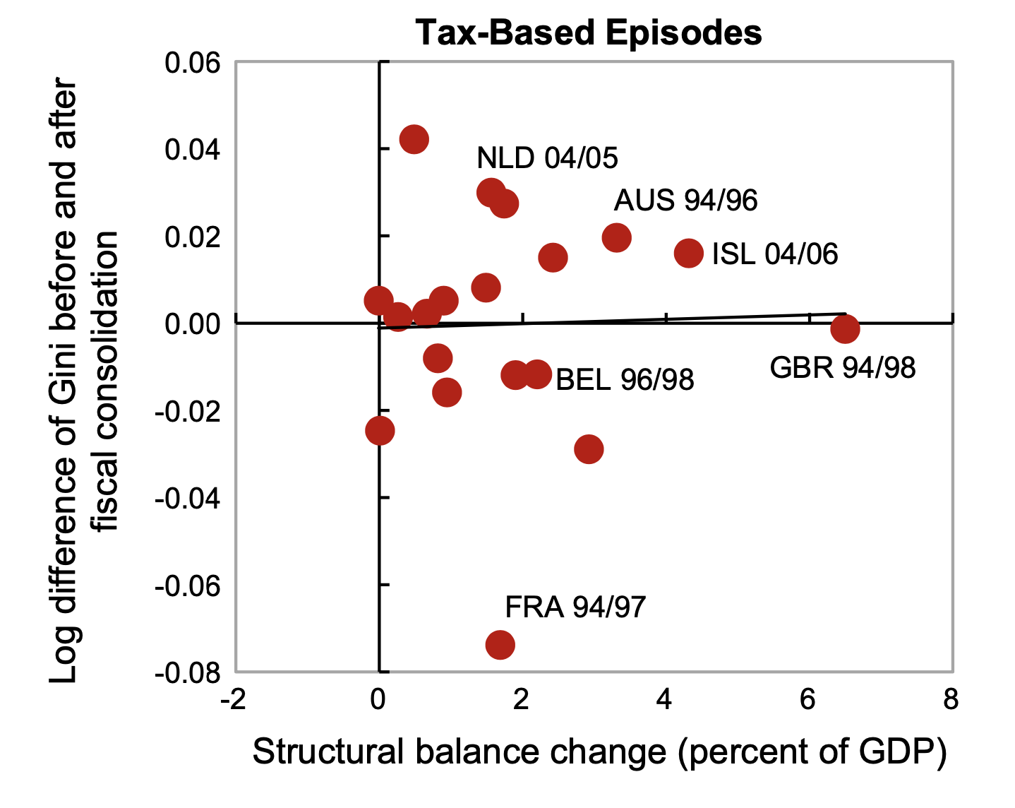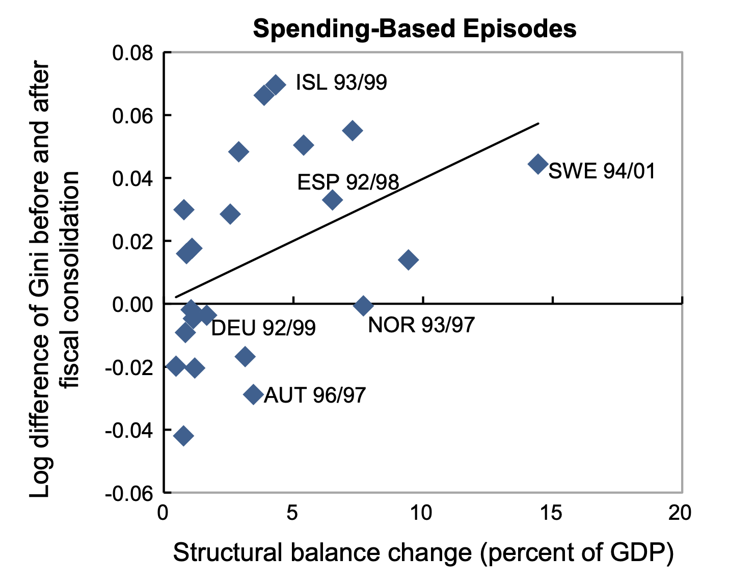 Studies typically find that inequality increases in periods of fiscal consolidation (with similar data):