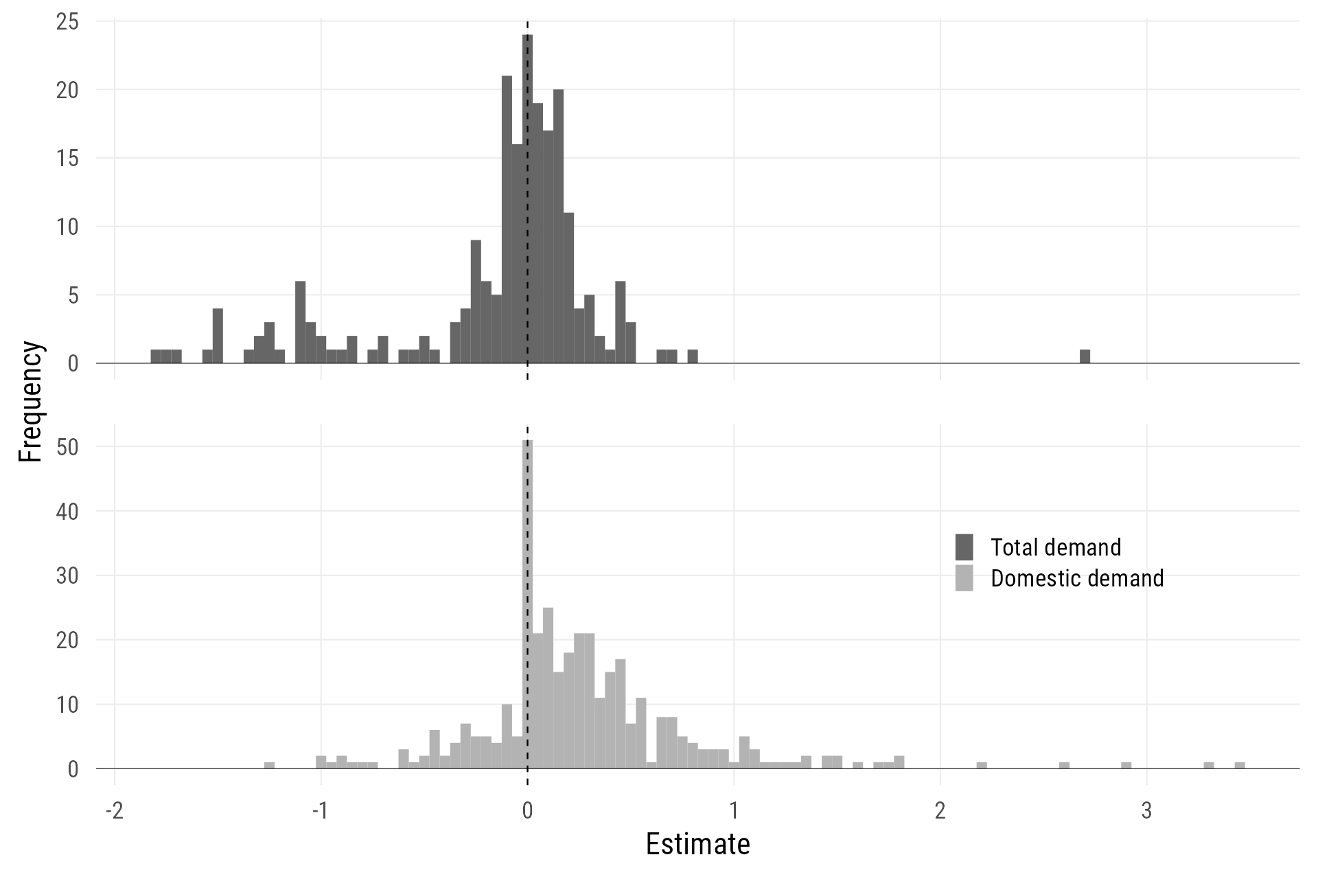 | Wage share ↑ | Consumption | Investment | Net exports | Dom. demand | Total demand |